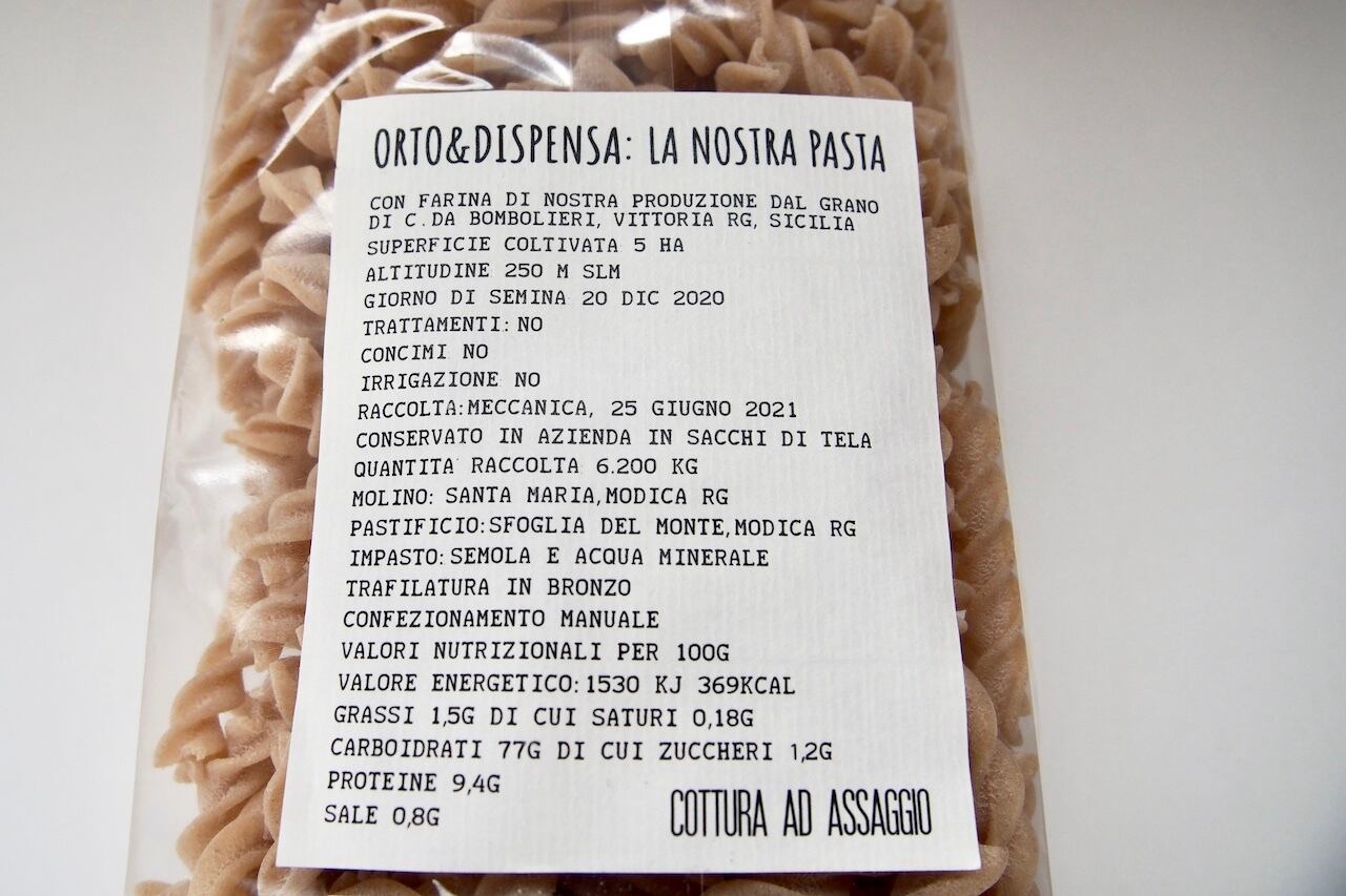 小麦は、無農薬、無施肥、一切の灌漑(かんがい:人工的に給水や排水をすること)も行わずに栽培。収穫後、麻袋に入れて保存していた小麦を、必要な量だけモディカにある製粉所に持ち込みセモリナ粉に製粉します。製粉した小麦粉は、彼女が全幅の信頼を置くラグーザ郊外のパスタ工房へ。そこでミネラルウォーターのみを加え、ブロンズ型で成型、じっくりと低温で乾燥させ丁寧に仕上げています。