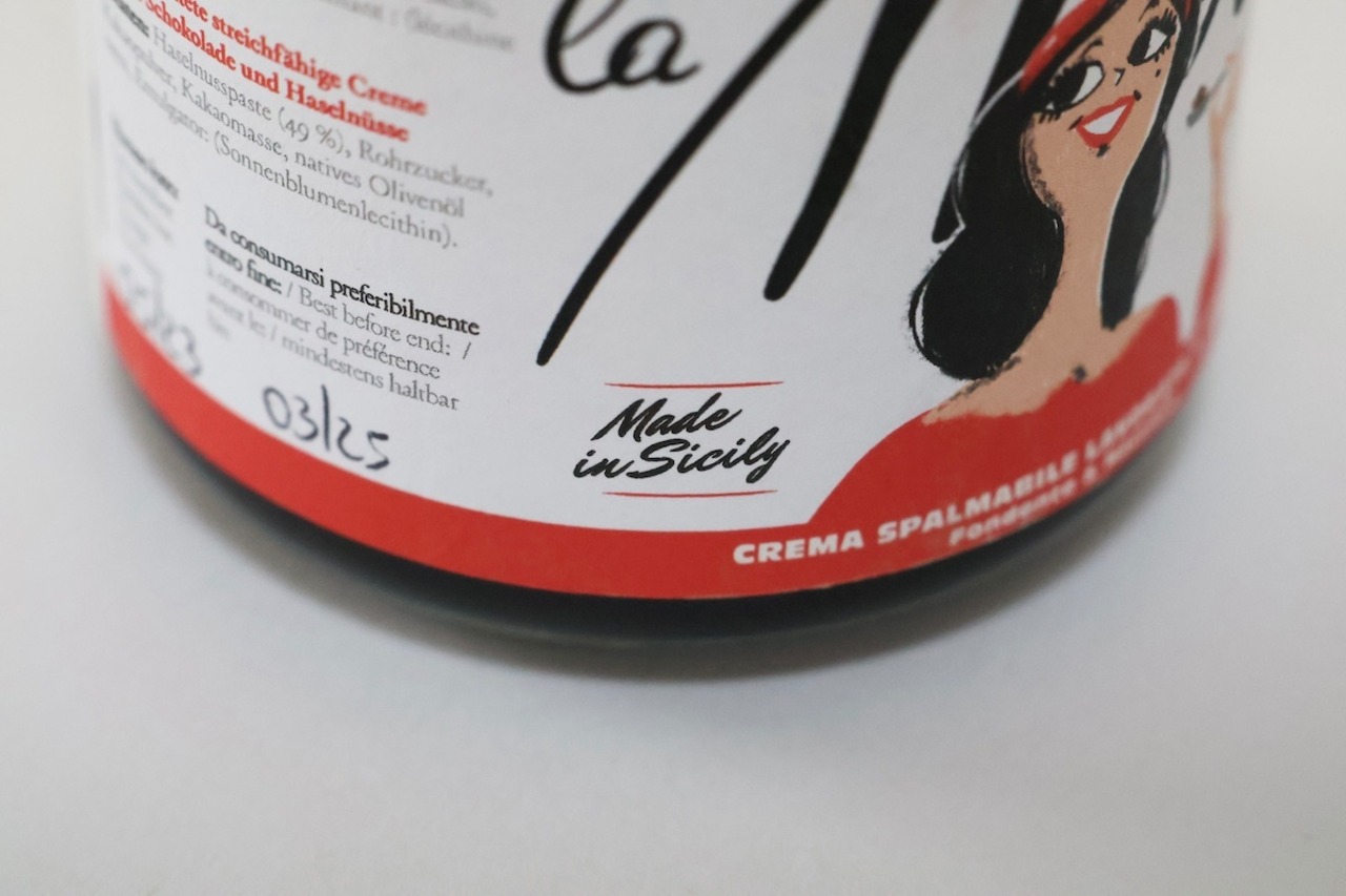 原材料名:ヘーゼルナッツペースト(49%)、きび砂糖、低脂肪ココアパウダー、カカオマス、エクストラヴァージンオリーブオイル、乳化剤(ヒマワリレシチン)